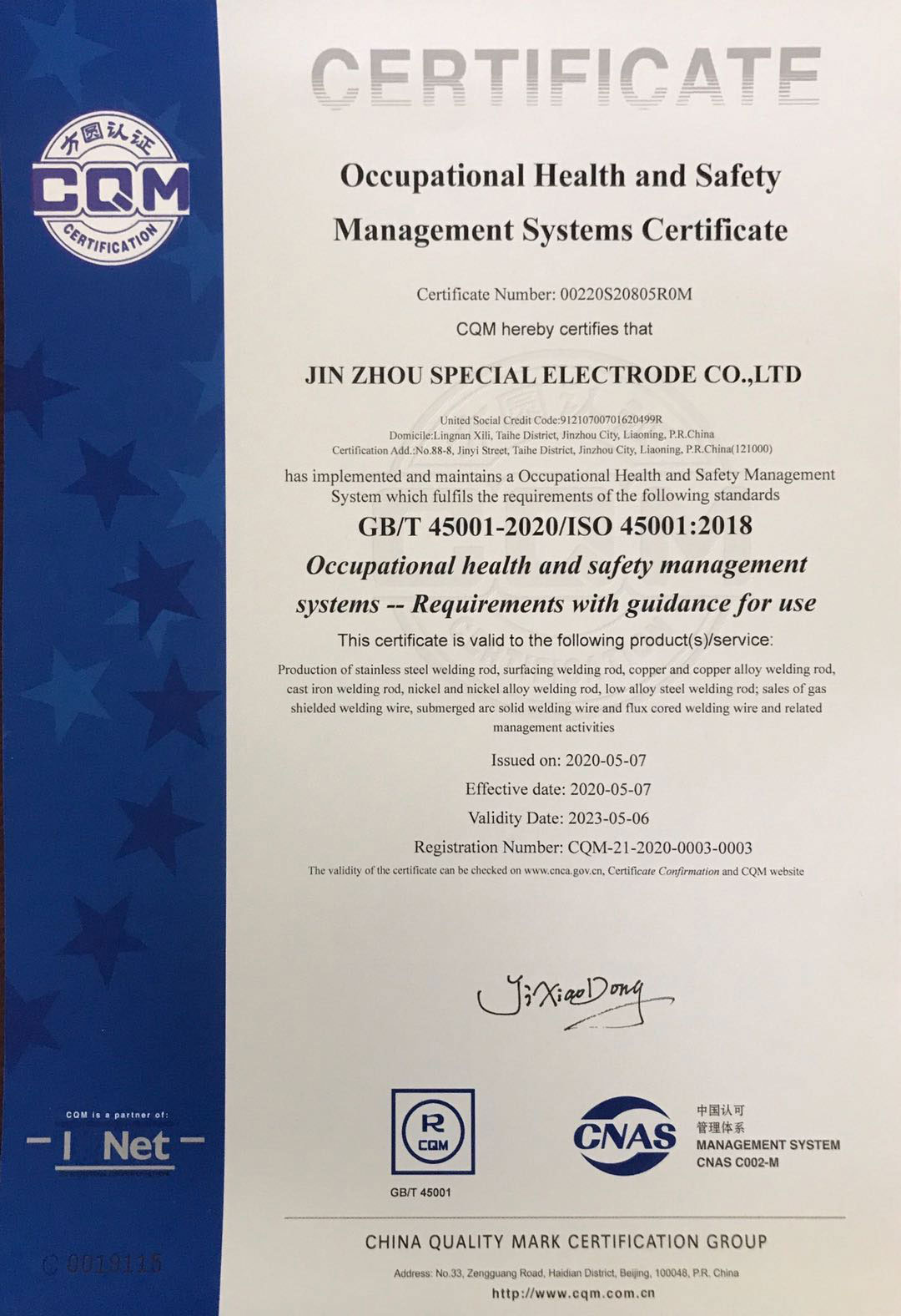 詳細(xì)信息:Production of stainless steel welding rod, surfacing welding rod,copper and copper alloy welding rod, cast iron welding rod, nickel and nickel alloy welding rod,low alloy steel welding rod; sales of gas shielded welding wire,submerged arc solid welding wire and flux cored welding wire and related management activities